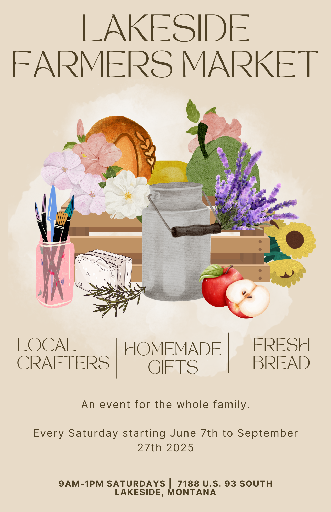 Across from Flathead Lake and Volunteer Park. Our space is graciously sponsored by Treasure State Coffee Company, and Lakeside Mini Storage.